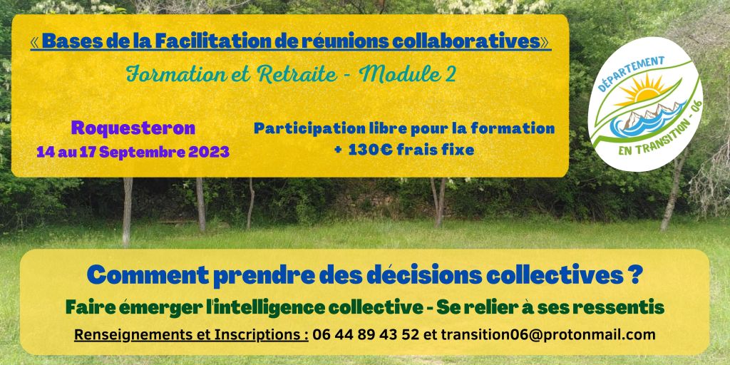 Toute personne en position d’animer des réunions dans une organisation collective* œuvrant pour une transition écologique, économique, sociale, culturelle, éducative et/ou citoyenne de la société. (*association, collectif, entreprise, collectivité…)