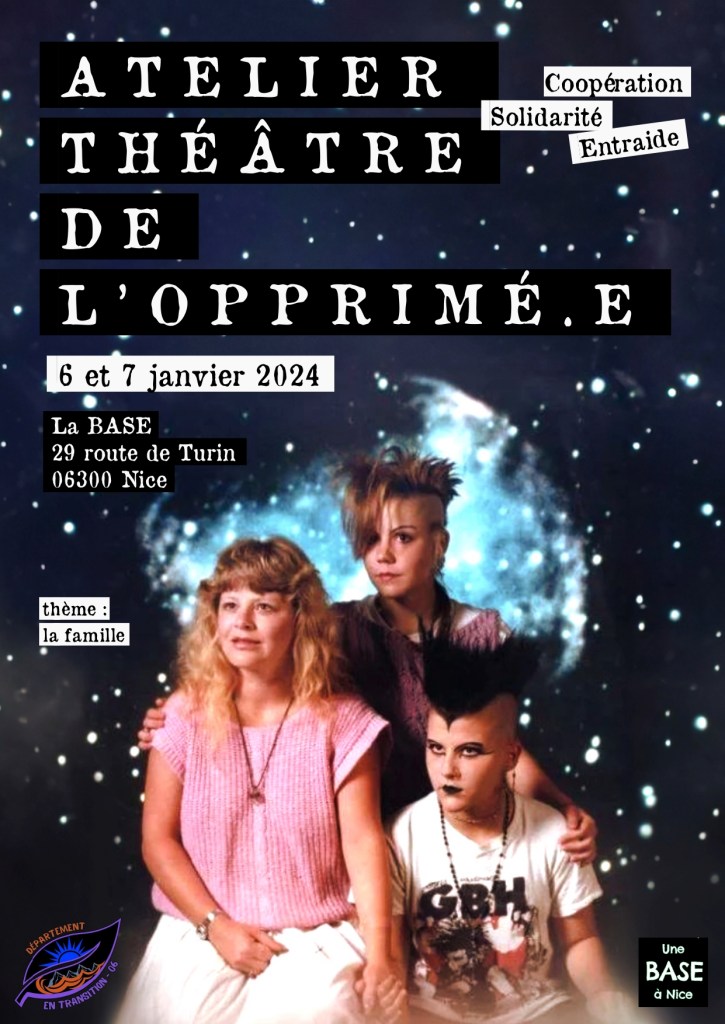 S’inscrire sur ce lien : https://www.helloasso.com/associations/departement-en-transition-06/evenements/theatre-de-l-opprime-sur-la-famille-a-la-base-nice-6-et-7-janvier-2024